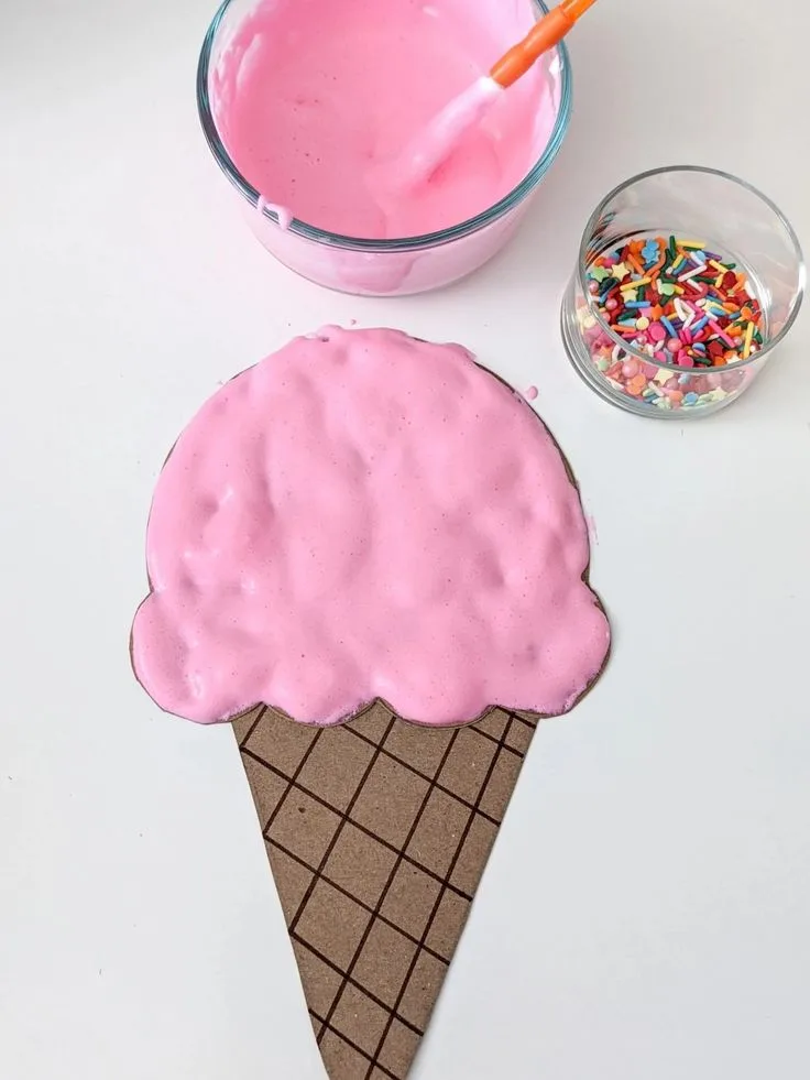 Mix shaving cream, glue, and food coloring to create puffy paint, then let kids paint delicious-looking ice cream cones on paper. This sensory-rich activity develops creativity while making art feel playful and exciting.