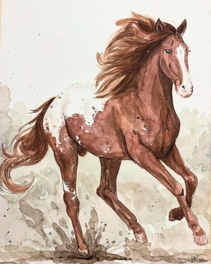 Patience is key. Take your time with the early stages, and don’t worry if the first washes look too light or too simple. Watercolor builds beautifully in layers, and each pass adds more life to your horse!