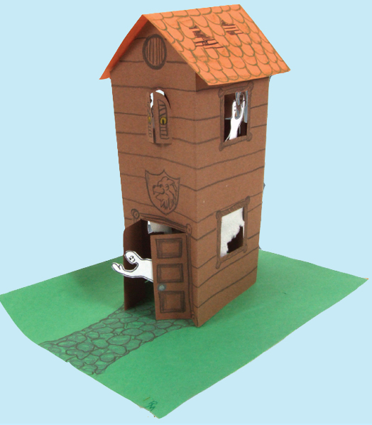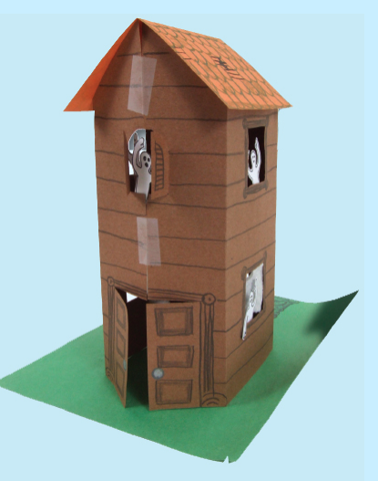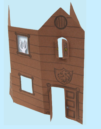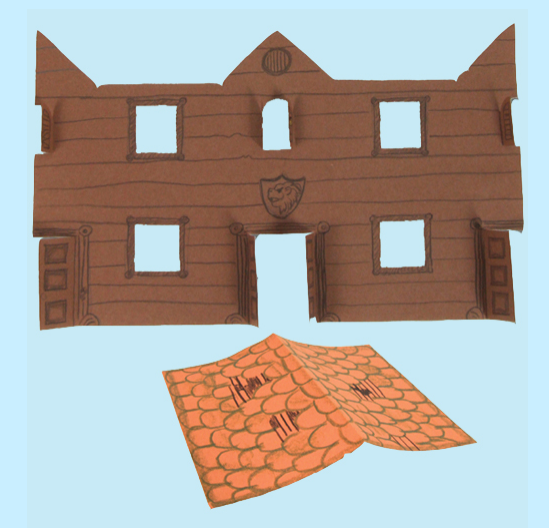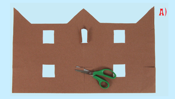 - Fold a large sheet of black construction paper in half and sketch a house outline with windows.