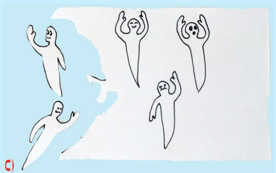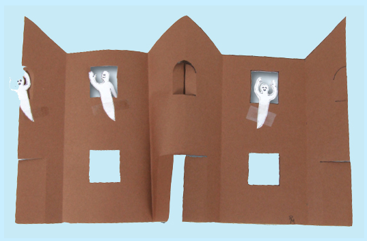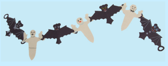 - Draw a bat shape on folded black paper and a ghost shape on folded white paper.
