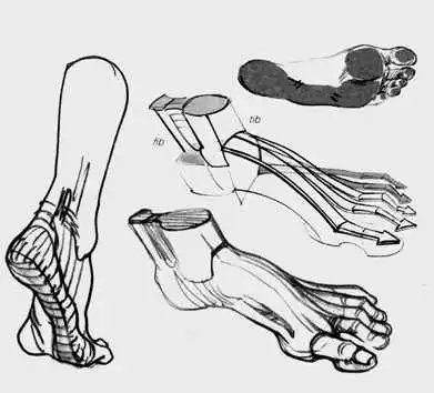 Lauricella layers drawings from skeleton to muscle to surface. This way, you see not just what a hand looks like, but why it looks that way. The knuckles protrude because bone is shallow beneath the skin; the ball of the foot bulges because of thick pads of fat cushioning weight.