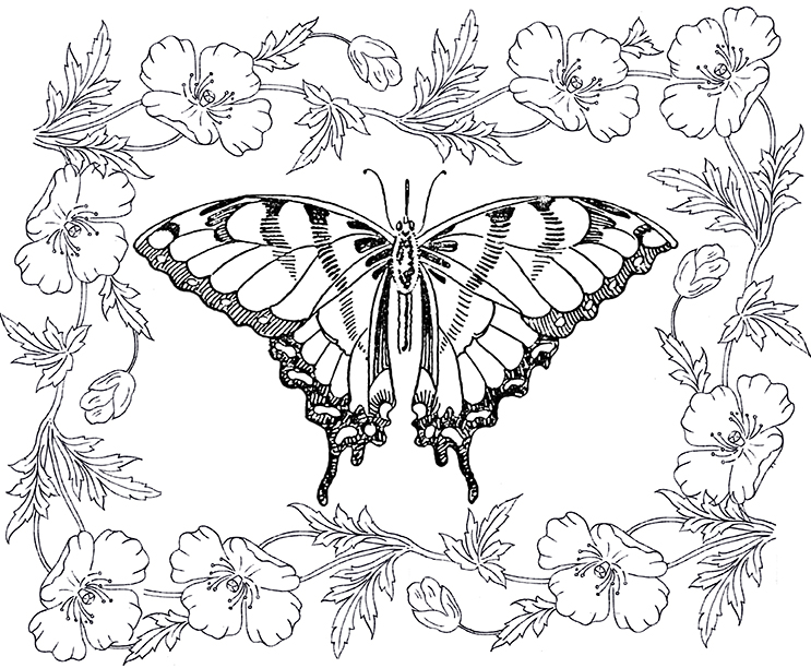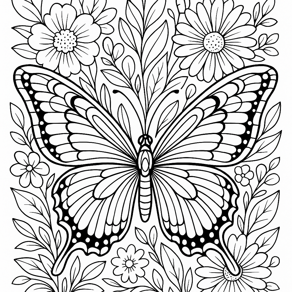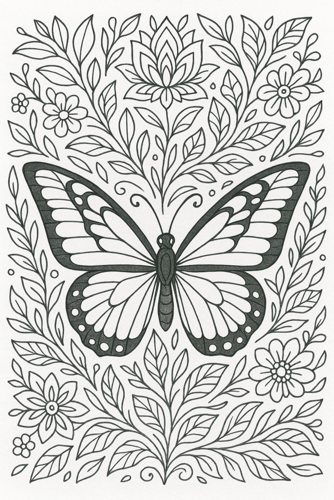 Butterflies surrounded by flowers, leaves, and garden elements. These connect you to nature and often create larger scenes for immersive coloring sessions.